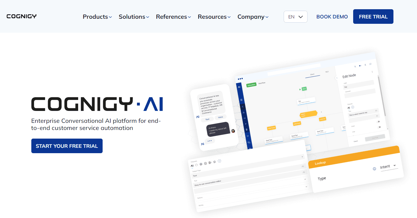 Cognigy.AI เป็นแพลตฟอร์มที่ผสานการทำงานกับ AI ขั้นสูง โดยมีความสามารถในการสร้างแชทบอทในรูปแบบข้อความ (Text) และเสียง (Voice) ได้ เพื่อยกระดับประสบการณ์การให้บริการลูกค้า ซึ่งสามารถใช้บริการในทุกอุตสาหกรรมและทุกระดับ สามารถปรับแต่งได้เพราะเป็น Low-Code Platform นอกจากนี้ยังรองรับการสนทนาในทุกช่องทาง ไม่ว่าจะเป็นบนเว็บไซต์ โทรศัพท์ ข้อความ SMS และแอปสำหรับอุปกรณ์พกพา