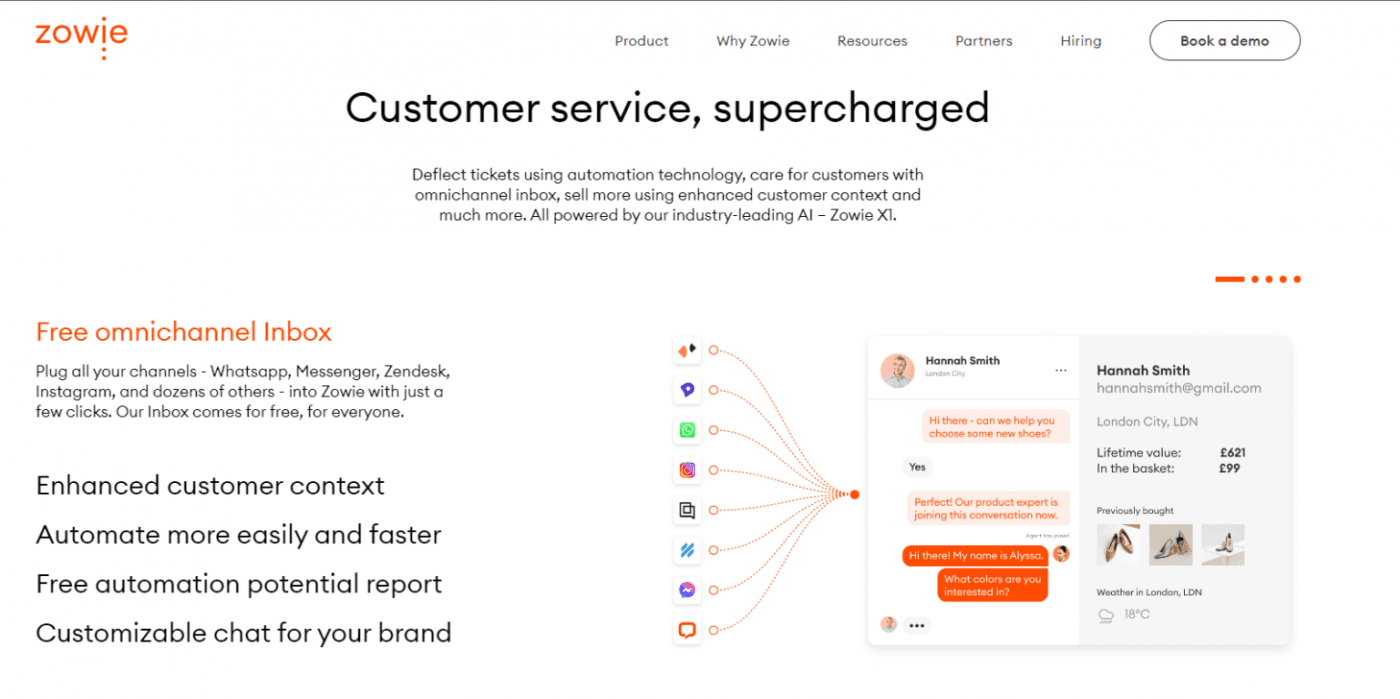 เป็นอีกหนึ่งแพลตฟอร์มหรือระบบแชทบอทที่ขับเคลื่อนด้วย AI ที่สามารถช่วยจัดการปริมาณงานที่เกี่ยวข้องกับการบริการให้เป็นแบบอัตโนมัติ โดยใช้การวิเคราะห์ข้อมูลจากประวัติการแชท และออกแบบกลยุทธ์งานอัตโนมัติโดยผู้เชี่ยวชาญร่วมกับความต้องการของแต่ละธุรกิจ เพื่อให้มีรูปแบบออกมาเหมาะสมที่สุด Zowie สามารถรองรับภาษาต่างๆ ได้ถึง 56 ภาษา และรองรับแชทบอทในแชทของเว็บไซต์ แชทในอุปกรณ์พกพา โซเชียลมีเดีย และแอปส่งข้อความต่างๆ