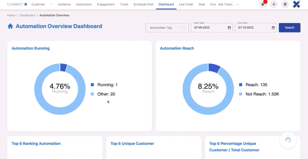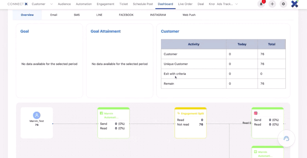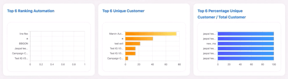 แดชบอร์ดแบ่งออกเป็นส่วนหลัก 3 ส่วน เพื่อให้ครอบคลุมทุกมิติของการตลาดอัตโนมัติ