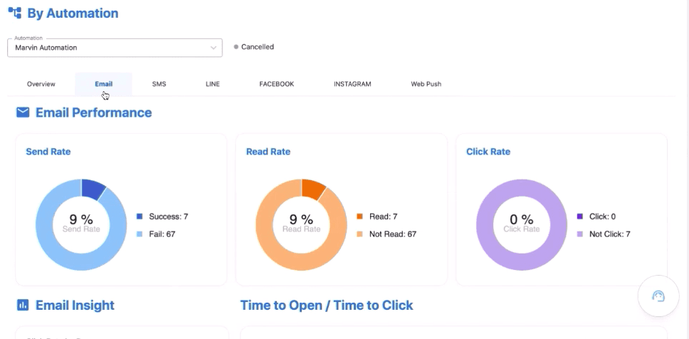 แสดงผลรวมของ Automations Dashboard ทั้งหมดของ Email