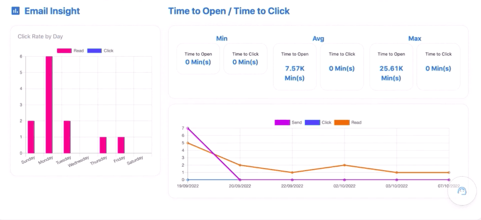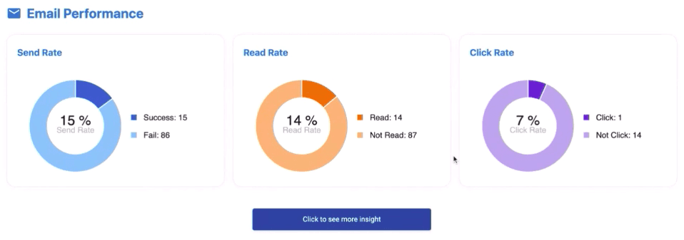 จัดแยกตามแคมเปญสำคัญ พร้อมข้อมูลเช่น จำนวน Leads สร้างใหม่, อัตราการเปิดอีเมล, อัตราการคลิก, Bounce Rate ในแต่ละแคมเปญ รวมถึงแผนภูมิเปรียบเทียบประสิทธิภาพช่วยให้ทีมการตลาดปรับงบและกลยุทธ์แบบเจาะจงได้ทันเวลา