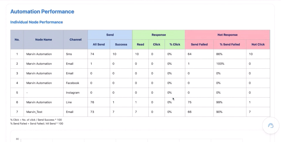 จะแสดงข้อมูลตัวเลขทั้งหมดของ การแสดงผลการตลาดอัตโนมัติที่ทำการเลือก